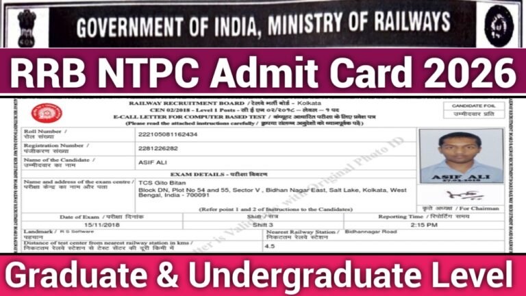 RRB NTPC Admit Card 2026 CBT- 1 Graduate & Undergraduate Level